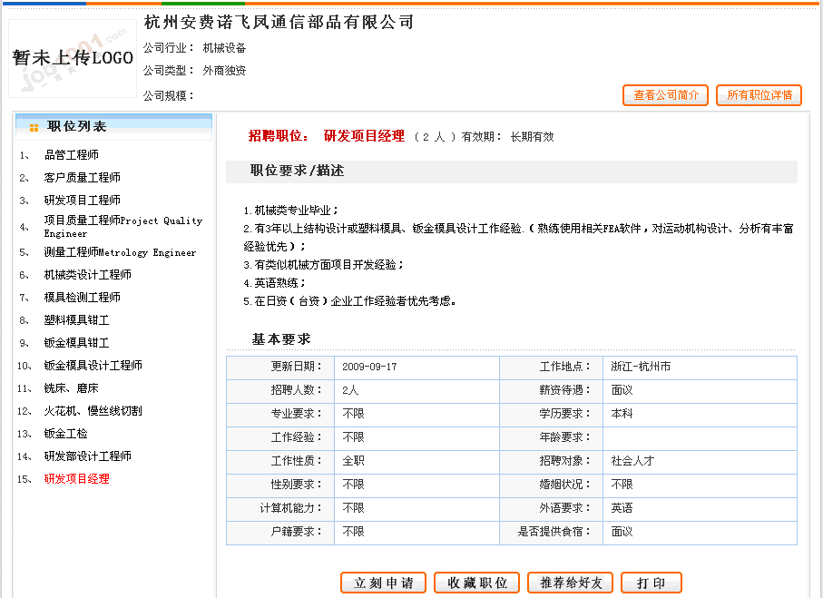 2) 點擊任意一個職位,然后點擊"立刻申請"